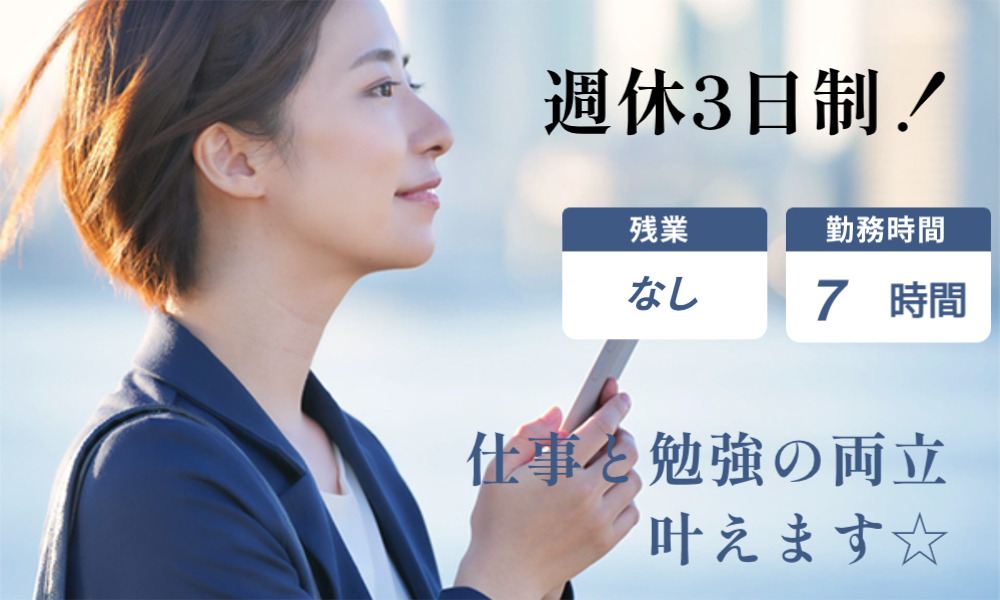 週休3日/7時間勤務/残業なし/資格習得応援!/充実した研修制度